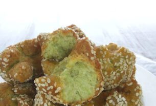 7. Panaskan oven suhu 180’C. Olesi permukaan adonan dengan telur, taburi keju. Panggang selama 20-25 menit. Setelah matang keluarkan dari oven dan olesi mentega supaya tidak kering permukaannya.